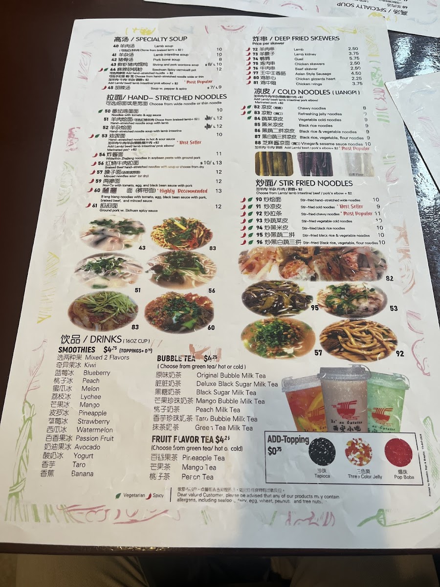 “ The lamb skewer was delicious, and so was the hand-stretched noodles with beef in hot & sour sauce. The marinated pork roujiamo was also yummy but the meat was a little dry. On the bright side, the chili oil was a good compliment to the meal and the food got out relatively fast after ordering. Overall, it's an another hole-in-a-wall restaurant in Chinatown that serves food other than the usual Cantonese food like many other places in the area. ”